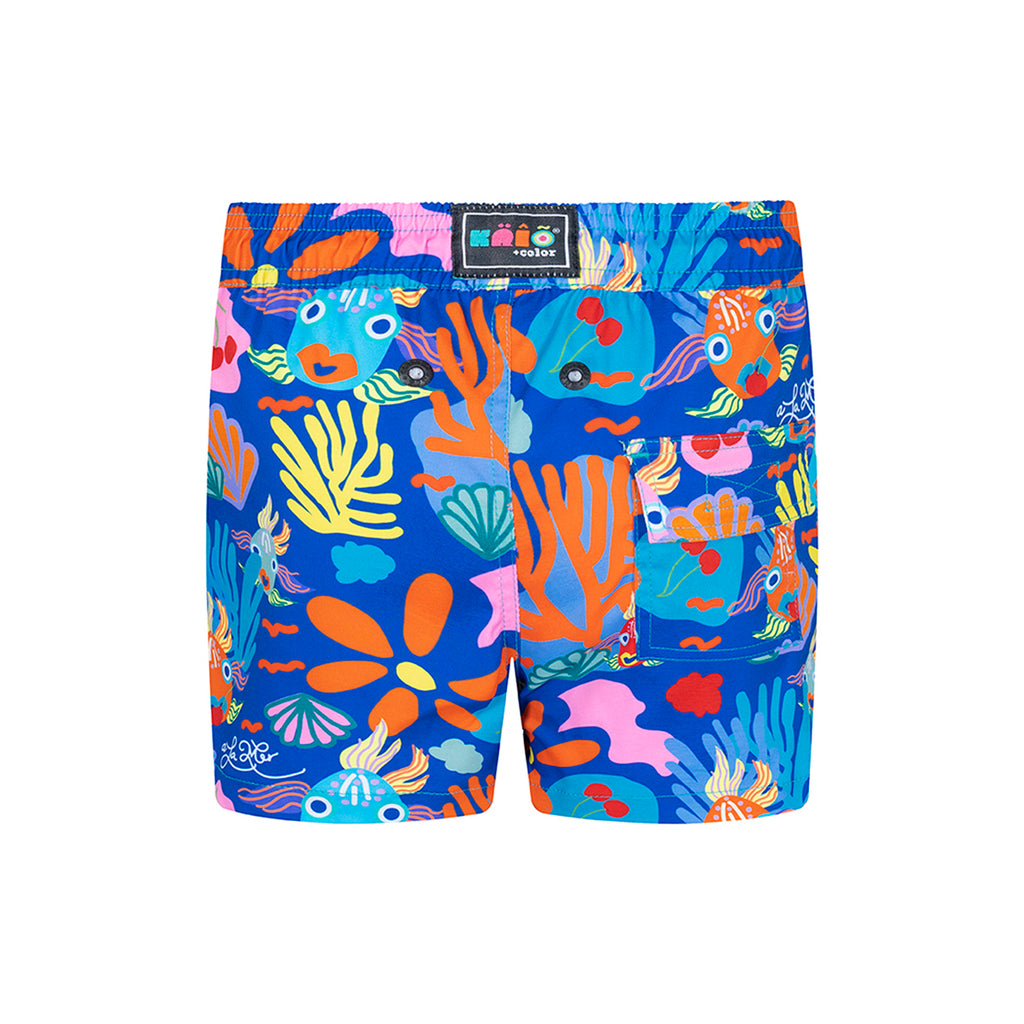 Nuestras pantalonetas para niños Sparkling Fish son divertidas y ajustan perfectamente. Son hechas con tela inteligente con protección PFS 50+. Con banda elástica, cordón ajustable, forro interno de malla, bolsillos en los lados, bolsillo trasero que contrasta con un cordón para ajustarlo. De secado rápido, con ojales de ventilación trasera, protección solar PFS 50+ y 100% Poliéster Reciclado.