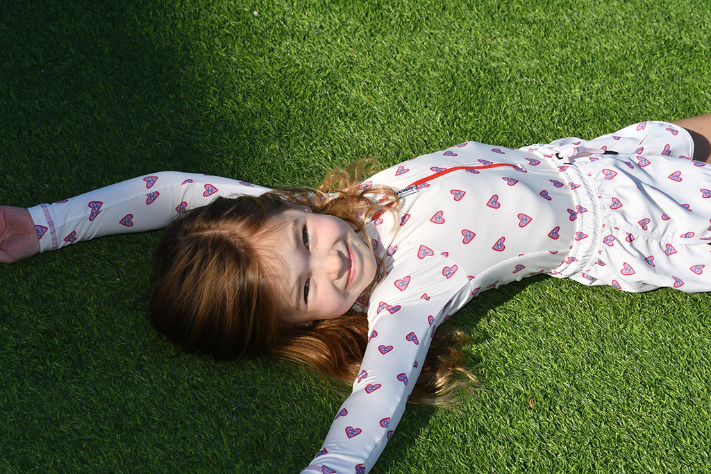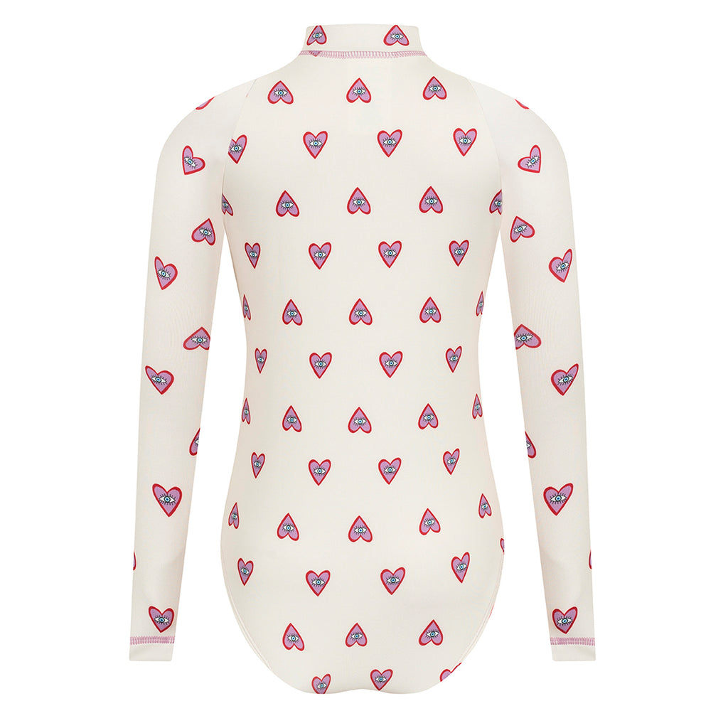 Hearts Girls Long Sleeve Bodysuit Rash Guard With Zipper
