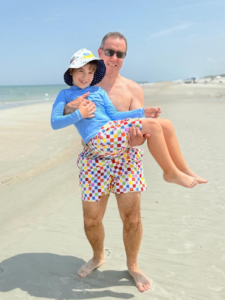 Nuestras pantaloneta para hombre Spades son divertidas, ajustan perfectamente y hacen juego con la pantaloneta de tus niños. Son hechas con tela inteligente con protección PFS 50+. Con banda elástica, cordón ajustable, forro interno de malla, bolsillos en los lados, bolsillo trasero que contrasta con un cordón para ajustarlo. De secado rápido, con ojales de ventilación trasera, protección solar PFS 50+ y 100% Poliéster Reciclado